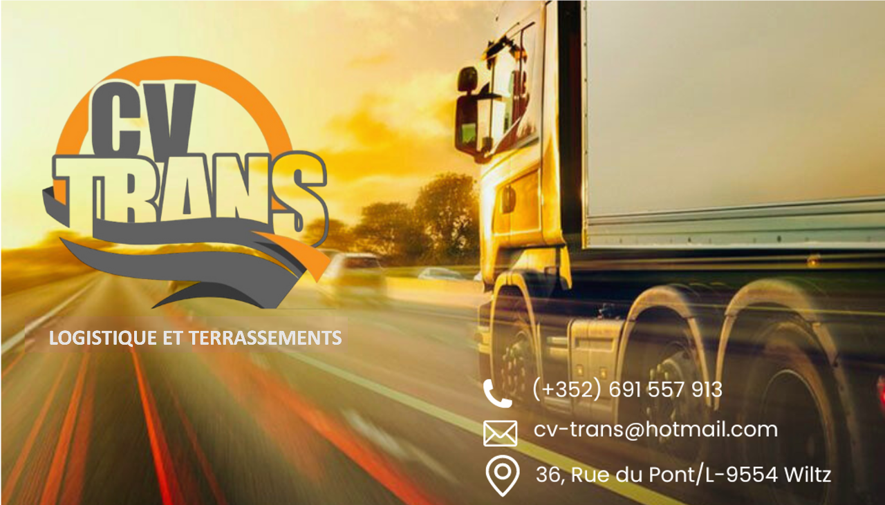 CV Trans, une entreprise établie à Wiltz, se spécialise dans les services de transport et de terrassement. Notre équipe expérimentée et notre flotte de véhicules modernes nous permettent d'offrir des livraisons rapides et fiables pour répondre à tous vos besoins logistiques. En matière de terrassement, notre savoir-faire et notre équipement spécialisé garantissent des travaux de qualité, que ce soit pour des projets industriels, commerciaux ou résidentiels. Nous mettons un point d'honneur à respecter les normes de sécurité et de l'environnement pour assurer des prestations précises et efficaces. Avec CV Trans, vous bénéficiez d'une expertise solide pour gérer vos transports nationaux et internationaux ainsi que pour optimiser la gestion de vos déchets de chantier. Faites confiance à notre entreprise pour des solutions sur mesure adaptées à vos besoins.